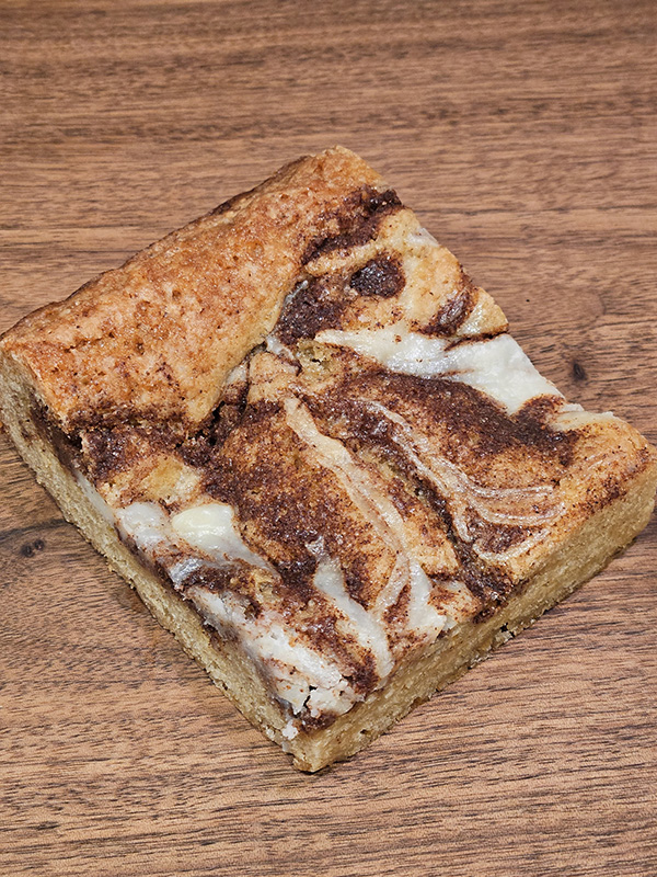 Brown butter cookie baked with cinnamon and cream cheese swirls.