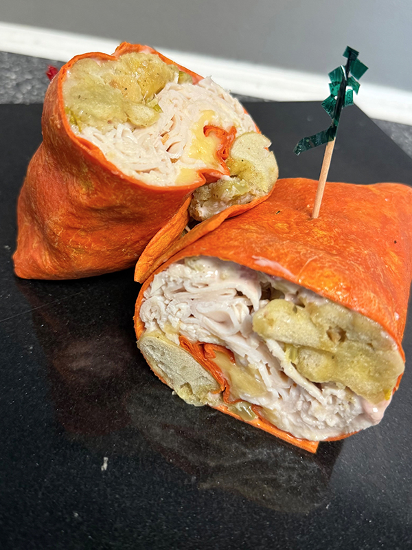 Fresh Carved Turkey with Homemade Stuffing, Cranberry Mayo, and Melted Smoked Gouda all served in your Choice of Wrap.