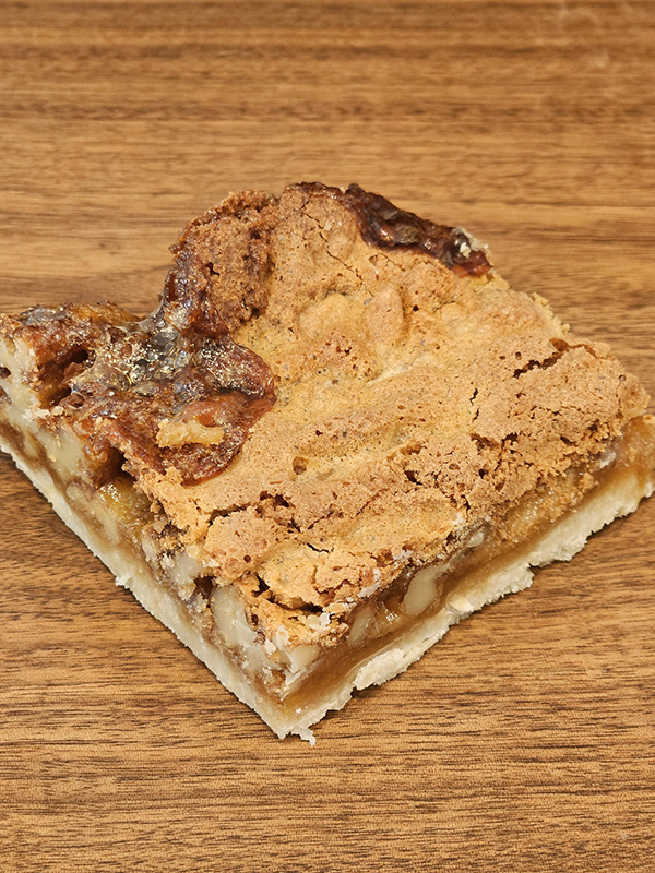 Shortbread crust baked with a brown sugar walnut topping.