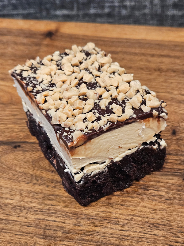 Our brown sugar blondies filled with Reese’s Pieces, Reese Peanut Butter chips, and mini-Reese Cups.