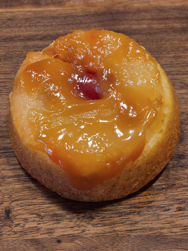 Pineapple cake baked with caramel, pineapple slice, and a cherry.