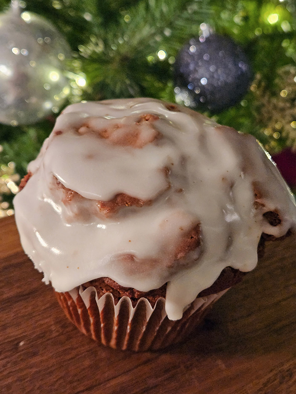 Ginger and Molasses spiced muffins topped with vanilla glaze.